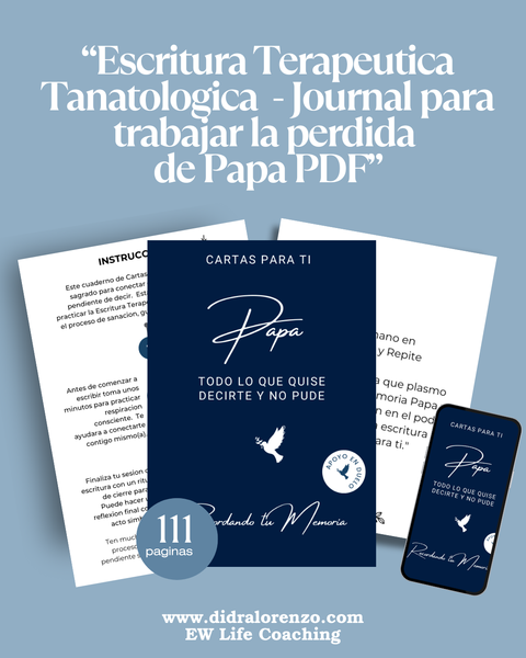 Incluye journals, guías descargables, ejercicios de escritura terapéutica y libros impresos que te ayudarán a expresar, comprender y transformar tus emociones. Cada material está creado para ofrecerte consuelo, claridad y un espacio íntimo para reconectar contigo y con la memoria de tu ser querido.